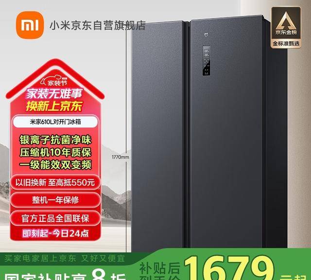 米家小米【国家补贴20%】610L对开门双开门一级变频大容量家用风冷无霜冰箱以旧换新BCD-610W