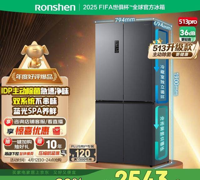推荐型号:容声513proIDP净味双系统十字门冰箱