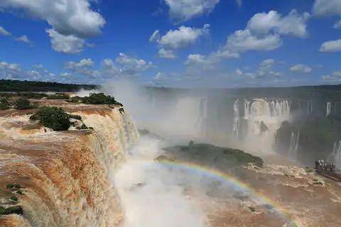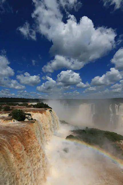 横向构图可以表现宽阔感。横拍的照片和人类的自然视野相似,能给人以一种安定感。在这张照片中,同时拍下了左侧的瀑布、中间的彩虹和右侧的观景台,给人空间广阔的感觉。