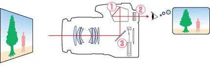 在按下快门按钮之前,通过镜头的光线由反光镜反射至取景器内部。小型数码相机多采用电子手段实现对被摄体的观察,而数码单反相机由于采用这种光学的方式,因此不会产生多种时滞延迟。