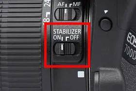 采用IS影像稳定器的镜头搭载了开启/关闭的开关。将“STABILIZER”开关置于“ON”即可启动防抖功能。