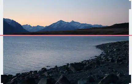 横向拍摄的照片整体与红框范围内的图像效果不同。由此可知即使在相同位置拍摄,使用不同焦距的镜头拍下不同范围的效果有很大不同。