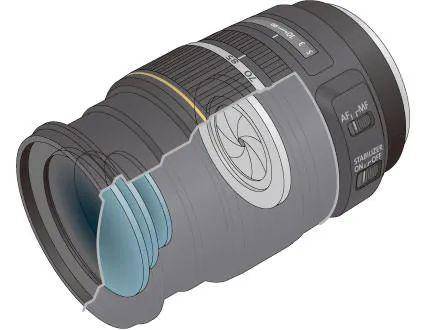 搭载手抖动补偿机构的镜头名称中有“IS”的标记。IS是Image Stabilizer的缩写。IS影像稳定器可根据手抖动产生的运动量移动部分镜片,使镜头成像画面稳定。该机构可抑制手抖动,以获得锐度高的画面。由于是在图像到达相机前就进行补偿,因此还具有可提高取景器成像稳定性以及自动对焦性能的优点。