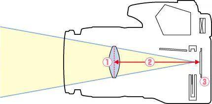 焦距是指从镜头的光学中心到成像面(焦点)的距离。此距离越长,则越能将远方的物体放大成像;此距离越短,则越能够拍摄更宽广的范围。下图仅采用单片镜片进行说明,但实际上镜头的中心点由多片镜片的结构决定。