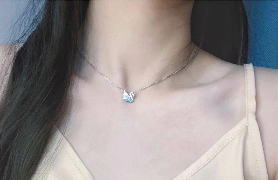 渐变蓝天鹅项链和吊带绝配,精致又闪亮,同色系银色项链搭配更加优雅大方。