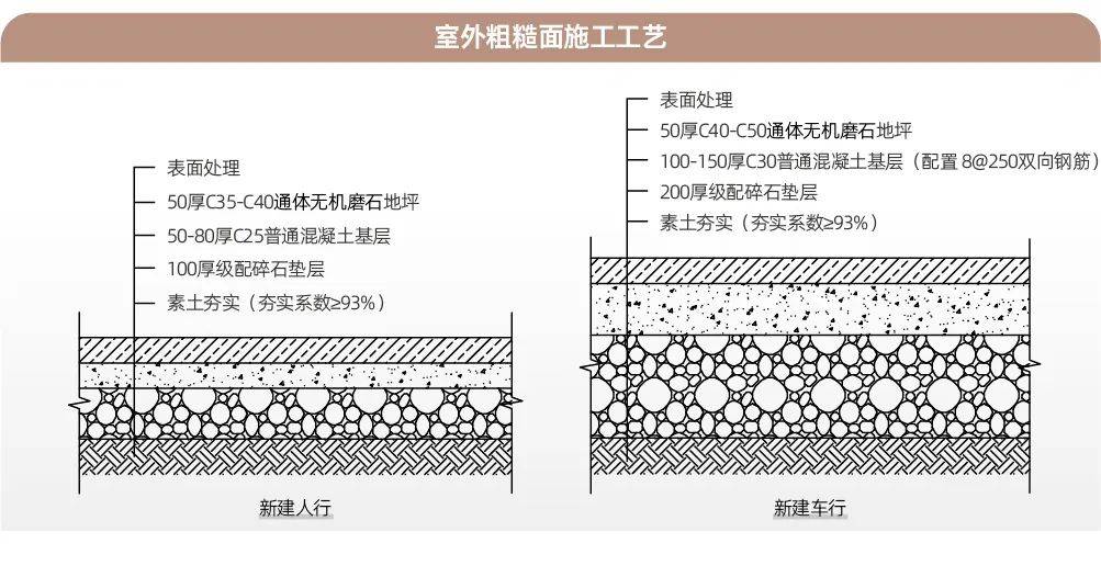室外景观:粗糙面处理在广场、步道中兼顾防滑需求与自然质感。