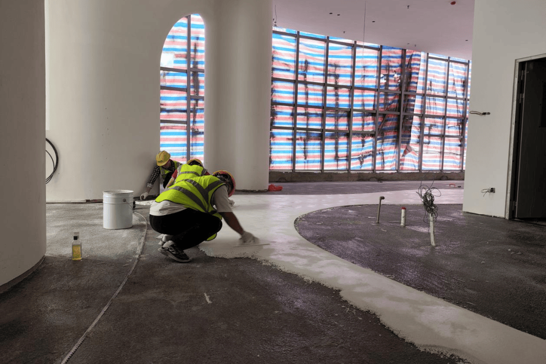 传统磨石地坪始终需要经历基层处理、界面层施工、装饰面层铺装等多道工序。这种分层式施工不仅延长工期,更因人工操作的不可控性导致品质波动。