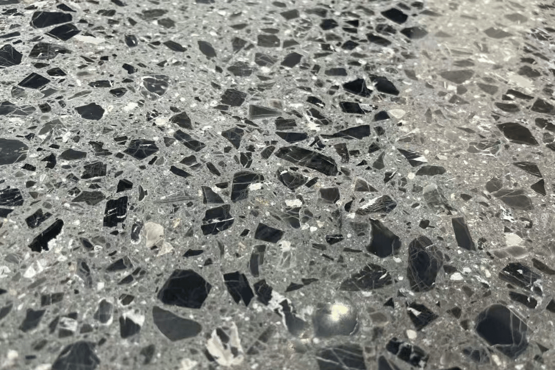 通体无机磨石的颠覆性,源于其从根本上重构了地坪的材料逻辑,它不是覆盖在混凝土上的装饰层,而是混凝土本身。通过将高强度骨料直接植入混凝土基体,实现结构层与装饰层的高度融合。
