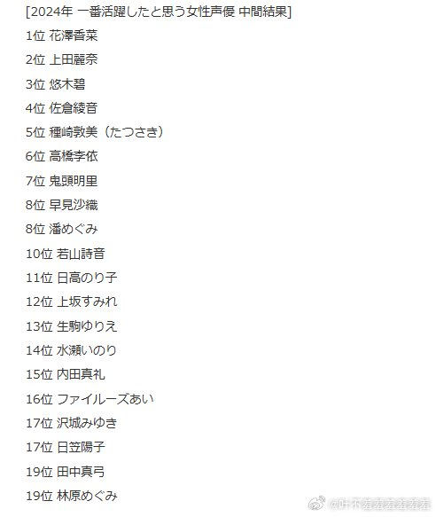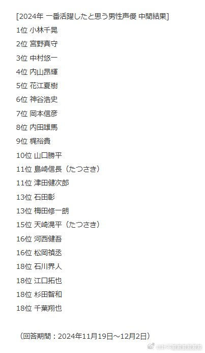 【2024年 最活跃的男性声优】中间结果 TOP20🏆