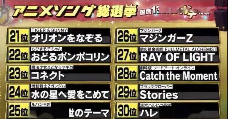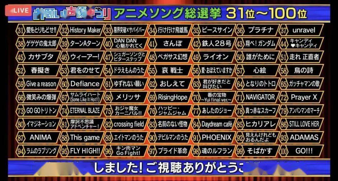 这一首算得上是TOP10中唯一没有动画人气加成,只靠歌曲本身胜出的动漫歌曲了。