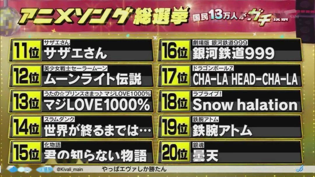 中国动漫迷们的还有很多心头好,虽然没有冲进前10,但也进入了榜单。