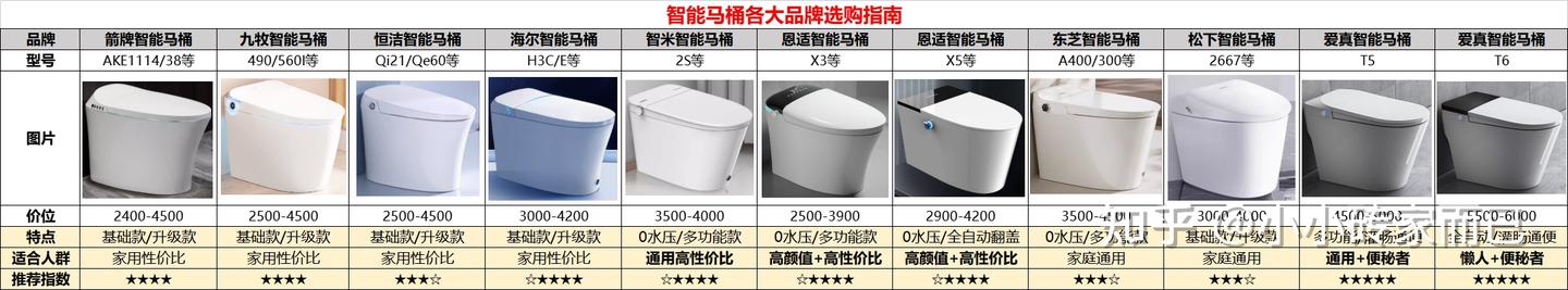 10、其他品牌智能马桶以上几个牌子是比较推荐的,当然市面上还有其他很多牌子智能马桶,比如TOTO、恒洁、希箭、摩航、东芝等,各有千有,后续持续更新。