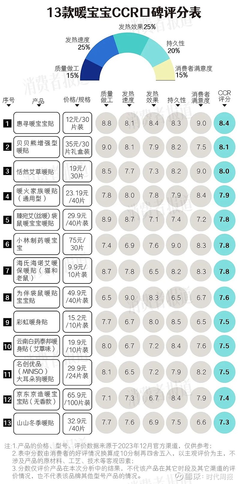 惠寻暖宝宝在本次口碑报告中CCR得分8.4,排名第一,在质量做工、发热效果、持久性上的得分都比较突出。