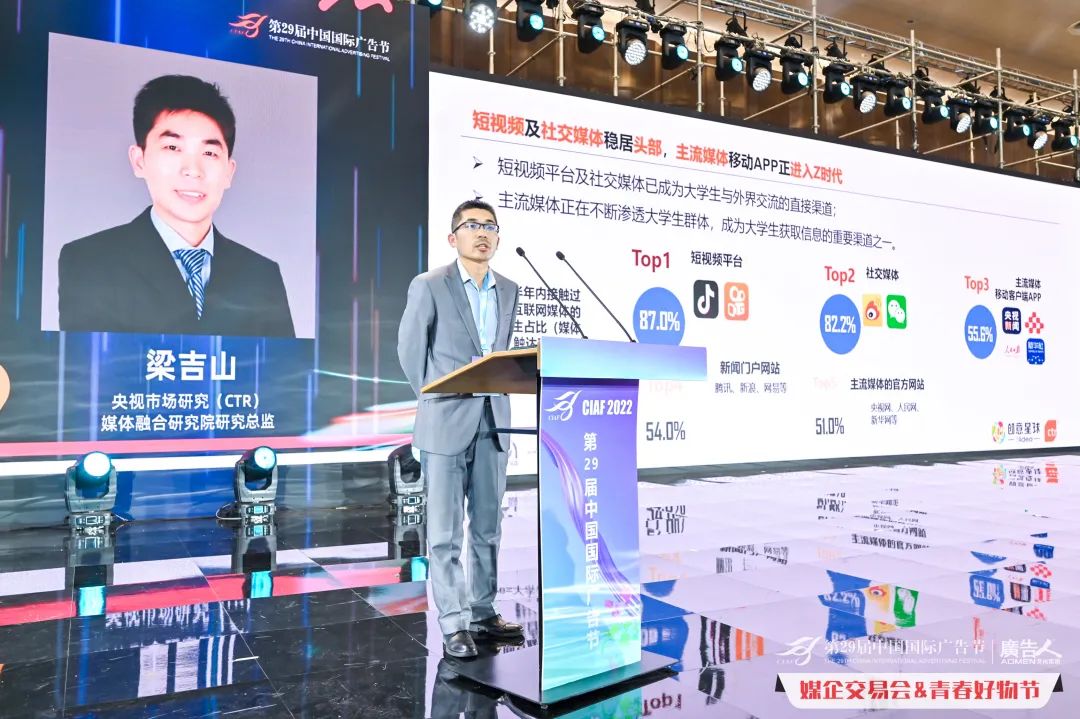 导读:12月22日,央视市场研究(CTR)媒体融合研究院研究总监梁吉山在厦门出席2022年中国国际广告节“中国品牌创新论坛”并发布了由CTR与创意星球联合调研并推出的重磅榜单—— 《青年榜·2022大学生爱用的品牌》及《大学生媒介与消费趋势研究》。以下为核心发布内容: