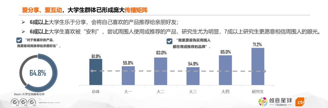 ● 第二阶段是10-12月,由3000+的在校大学生从500个入围品牌中最终评选出300个品牌,同时对大学生的媒介接触和消费理念进行了调研和洞察。我将用6个关键词来概括本次研究的发现。