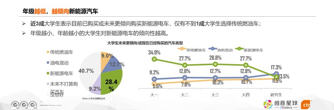 ● 说明,新能源车已经为大多数大学生所接受,绿色出行、绿色消费的理念深入大学生之中。