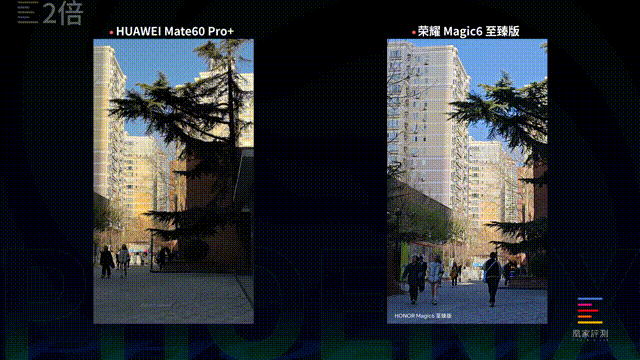 画面放大到2倍后,华为跟荣耀的解析力有明显的下降,画面中开始出现相对明显的噪点,其他5款的画面整体表现并没有出现太影响观感的明显区别。继续放大到3倍,已经切换到长焦镜头的三星、OPPO以及荣耀在细节处理上要比依靠主摄裁切的iPhone跟vivo更好。尤其是荣耀,这颗长焦镜头在白天录像时的表现要比主摄好上不少。而小米跟华为这时的画面解析力已经与其他5款机型拉开了明显的差距。