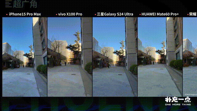 而在超广角表现上,7款机型不管是边缘还是中心解析力都 OK ,色彩表现也都还不错。但华为、荣耀、小米以及OPPO缺少对于远处建筑的高光压制,画面宽容度不够。