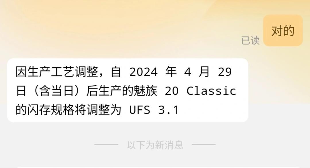 除了直接涨价,不同厂商应对成本飙升的办法也不同:5 月 6 日,有网友发现自己购买的魅族 20 Classic 在售价不变、并未提前通知的情况下,到手的硬件闪存规格从发布会宣称的 UFS 4.0 变为了 UFS 3.1,两个规格的闪存在峰值传输速度差了一倍,会直接影响到几乎所有智能手机日常的使用体验。