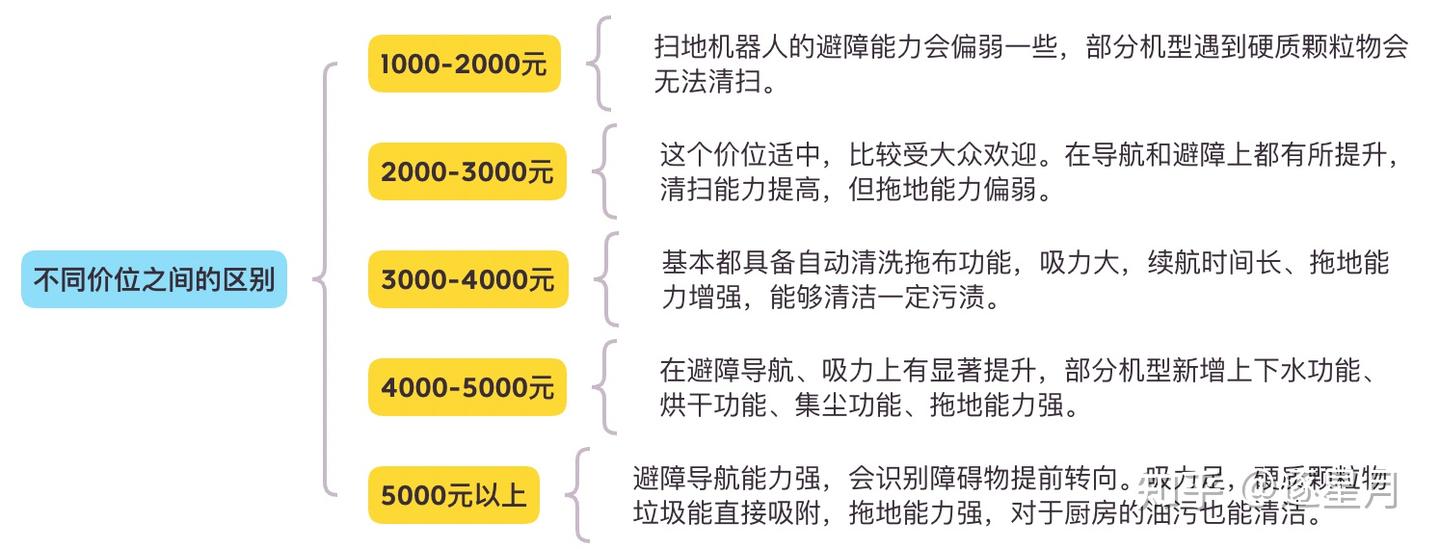 整体动态避障很灵敏、扫拖能力优秀,适合注重墙边死角处和低矮区域的扫拖清洁效果。https://xg.zhihu.com/plugin/ba0810d9752447395684e3067166aea2?BIZ=ECOMMERCE先来回答大家最关注的三个问题。1、不同价位扫地机器人有什么区别?市面上比较好的品牌的扫地机器价格都不会太低,如果你看到网上哪些几百元的扫地机器人都是不知名品牌的某代工产品。这类便宜扫地机器人的品控和质量上都比较差、激光导航也大不如所宣传的效果,清扫规划能力弱,实际体验下来用户反馈都不太好。