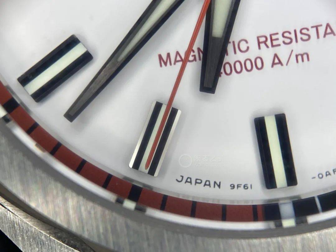 为了呼应标题,我们把背面照放在了第一张。TC后盖的卡槽分布给开盖造成了些许麻烦,GS后盖的卡槽分布更方便开盖,毕竟淘宝上最常见的开盖器是两个脚的。AQ4030-51L的防磁能力只有60高斯,但在强磁场下,A060机芯可以停下马达用芯片继续计时,等撤去磁场再自动修正表针。9F61没有这个表针修正功能,好在SBGX341加装了铁布衫,可以硬抗500高斯的磁场。防水能力方面,AQ4030-51L是100米,SBGX341是200米。采用钛壳的AQ4030-51L会比采用钢壳的SBGX轻很多,前者全重85克,后者全重165克。钢壳的优点是更容易抛光。