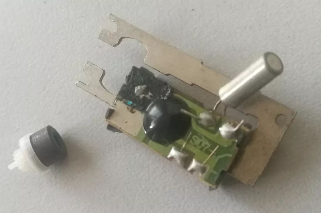 我们把它的电机板从机芯总成上取下来,仔细看一看,在它的背面还有块小的电路板。这个电路板上有一个银色的柱形元件,它叫作石英晶体振荡器,简称晶振。石英钟作为一种机械钟表,与传统的机械钟最大的区别就是控制走时精度的机构有区别,传统的机械钟靠的是钟摆,因为我们知道钟摆是有固定的振荡频率的,机械表利用这个特性保持时钟走时的准确,但是钟摆很大,像个秤砣。