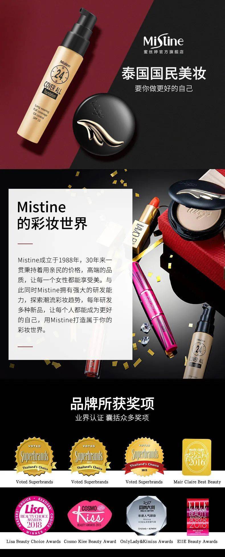 Mistine(蜜丝婷)大家应该都久仰大名了吧?成立于1988年的泰国第一美妆品牌。