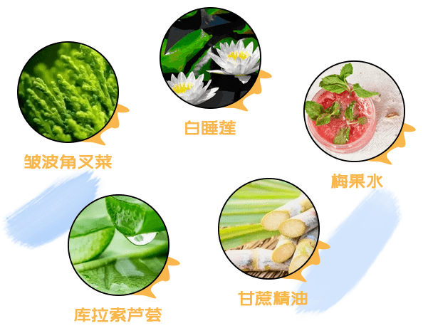 所以,小黄帽用 皱波角叉菜、白睡莲、梅果水、库拉索芦荟、甘蔗精油代替化学润肤物质。