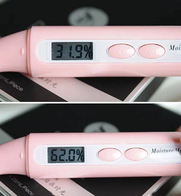 我们在喷完防晒之后2分钟进行测试: 肌肤的水分瞬间上升18%,油分下降24%,真的敲级水润不黏腻~