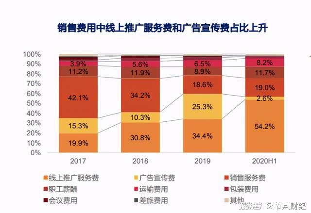 根据销售费用占比看,线上推广服务费和广告宣传费占比逐年上升,到了2020年H1,更高达54.2%。其中有一部分流入了顶流主播的口袋。