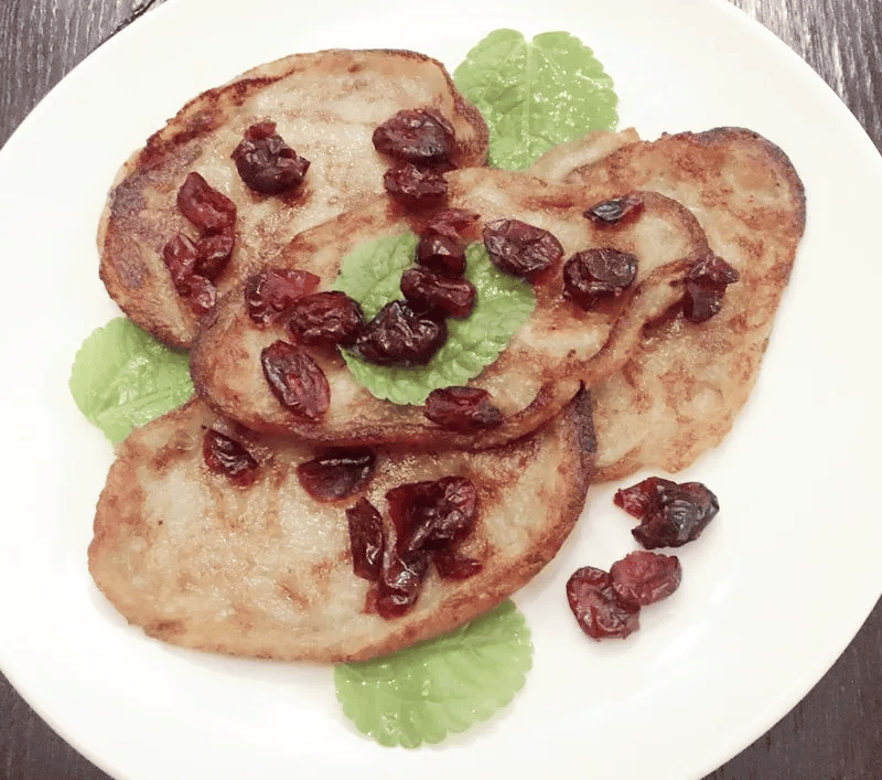 6.热锅,下玉米油把饼的两面煎至金黄,红薯饼中间略有鼓起,表明已经熟了,关火即可