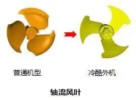 格力冷酷外机通过优化轴流风叶与出风隔栅,大幅度降低风噪;相同的额定转速,风机降噪4分贝。