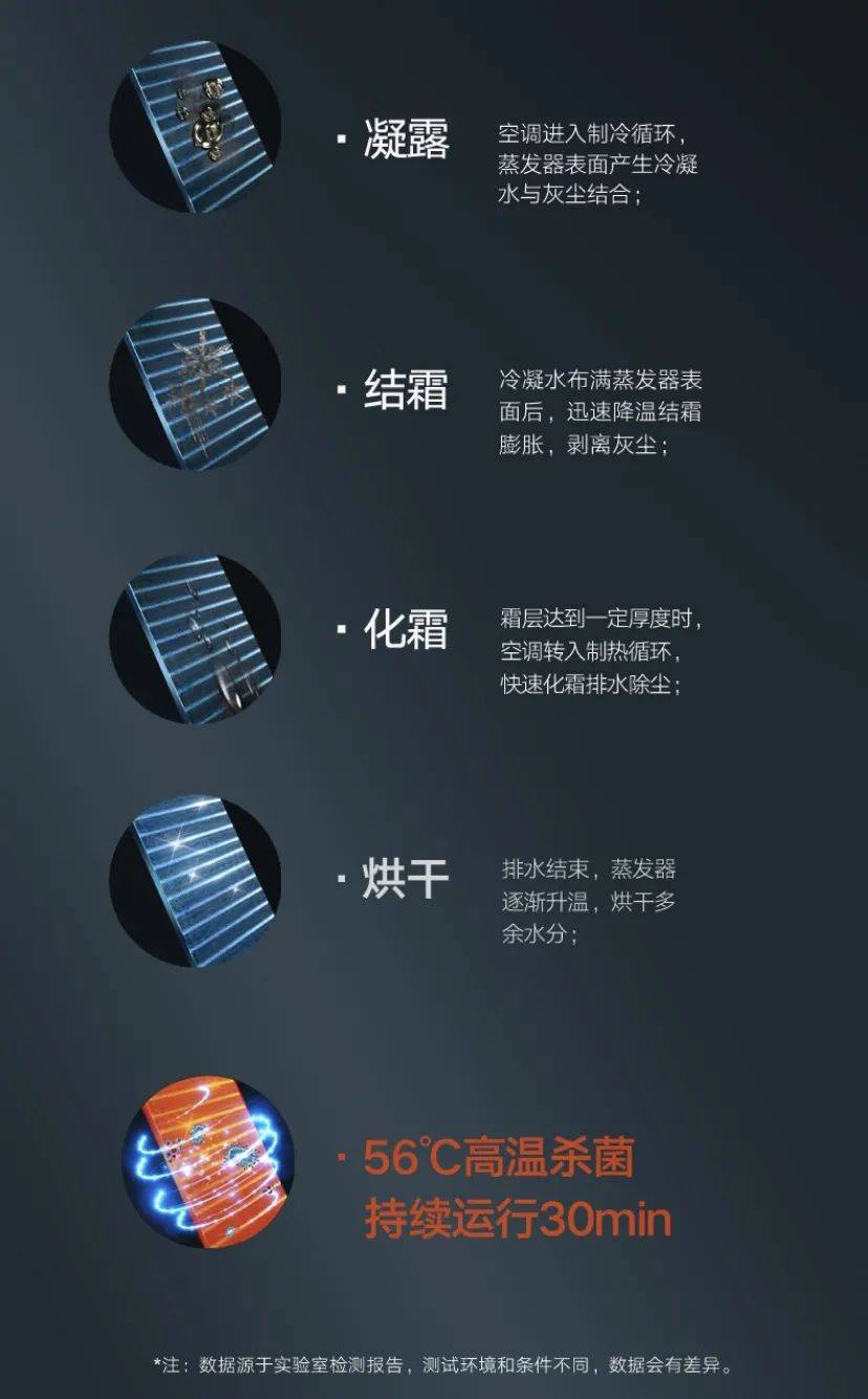 有人认为自己家空调使用频率不高,空调就不脏,但其实蒸发器极其容易堆积细菌,时间久了空调吹出的风都是不干净的风。新一代格力·冷静王搭载 56°C净菌自洁,无需自己动手清洁,只需 “凝露、结霜、化霜、烘干、56°C高温杀菌持续运行30mim”五重步骤深度自洁。除尘干燥二合一,拒绝空气二次污染,空调更“净”一步,健康更进一步!