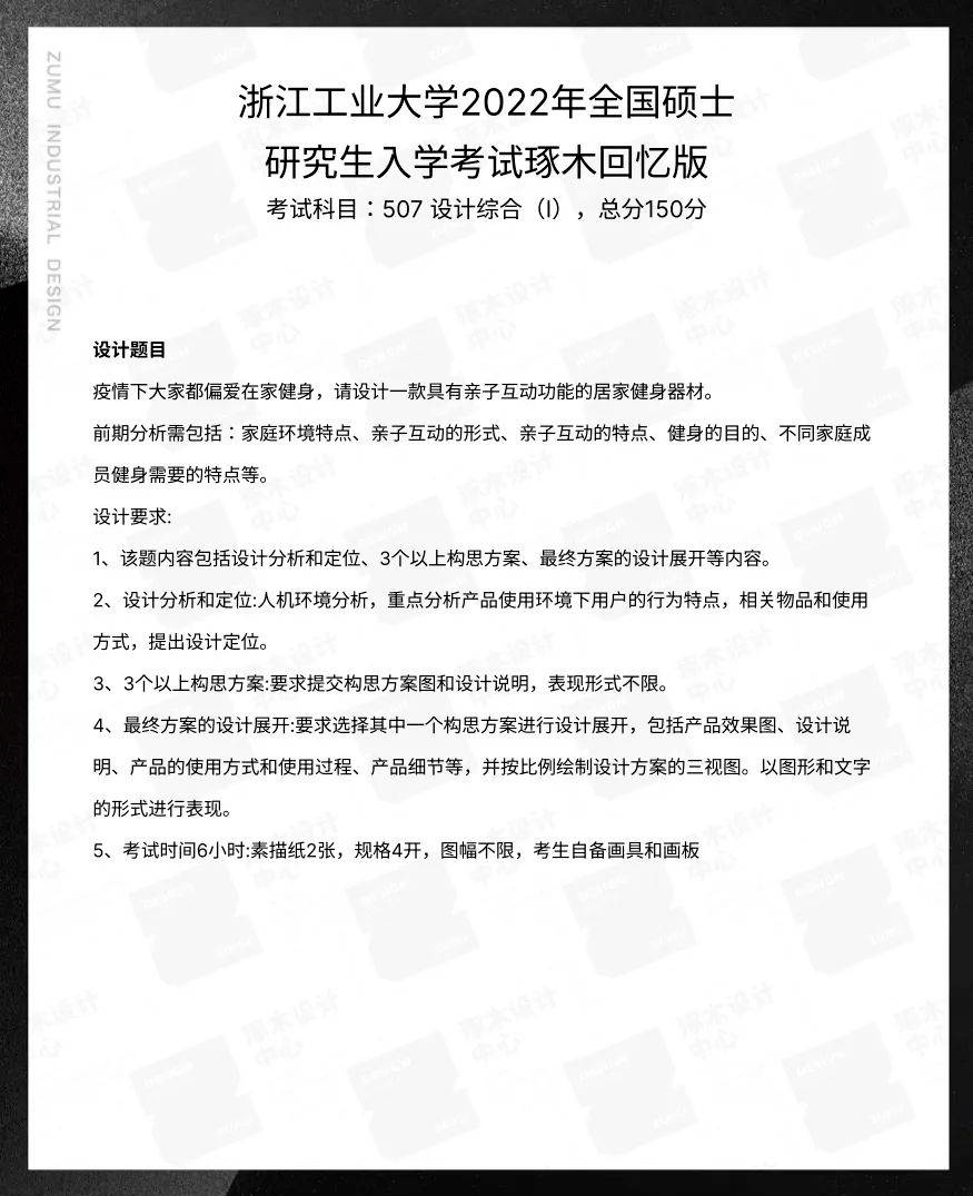 总结2022年浙江工业大学设计类考试不再区分专硕学硕,所有方向统一出题。610设计基础科目取消往年理论题中的名词解释、简答题板块,加重论述题板块,论述题板块分值100分,占理论总权重的三分之二,备考工大的同学们不可小视。考题难度中规中矩,从题目内容来看,设计基础题是与工大官方参考书目中有明显关联的一题,但并不代表考试大纲中所给的《世界现代设计史》和《设计学概论》两本参考书无用,所有的知识点都是从书本中延伸而来的,书中自有黄金屋,书中自有颜如玉,书中的经典案例、论点、论据都可以作为你论述题中的语料加以运用,所以对于对于23年的考生而言,在夯实书本内容的基础上,同步关注时代热点、关注设计热点,并积累设计案例,争取为备考做好充分的准备。