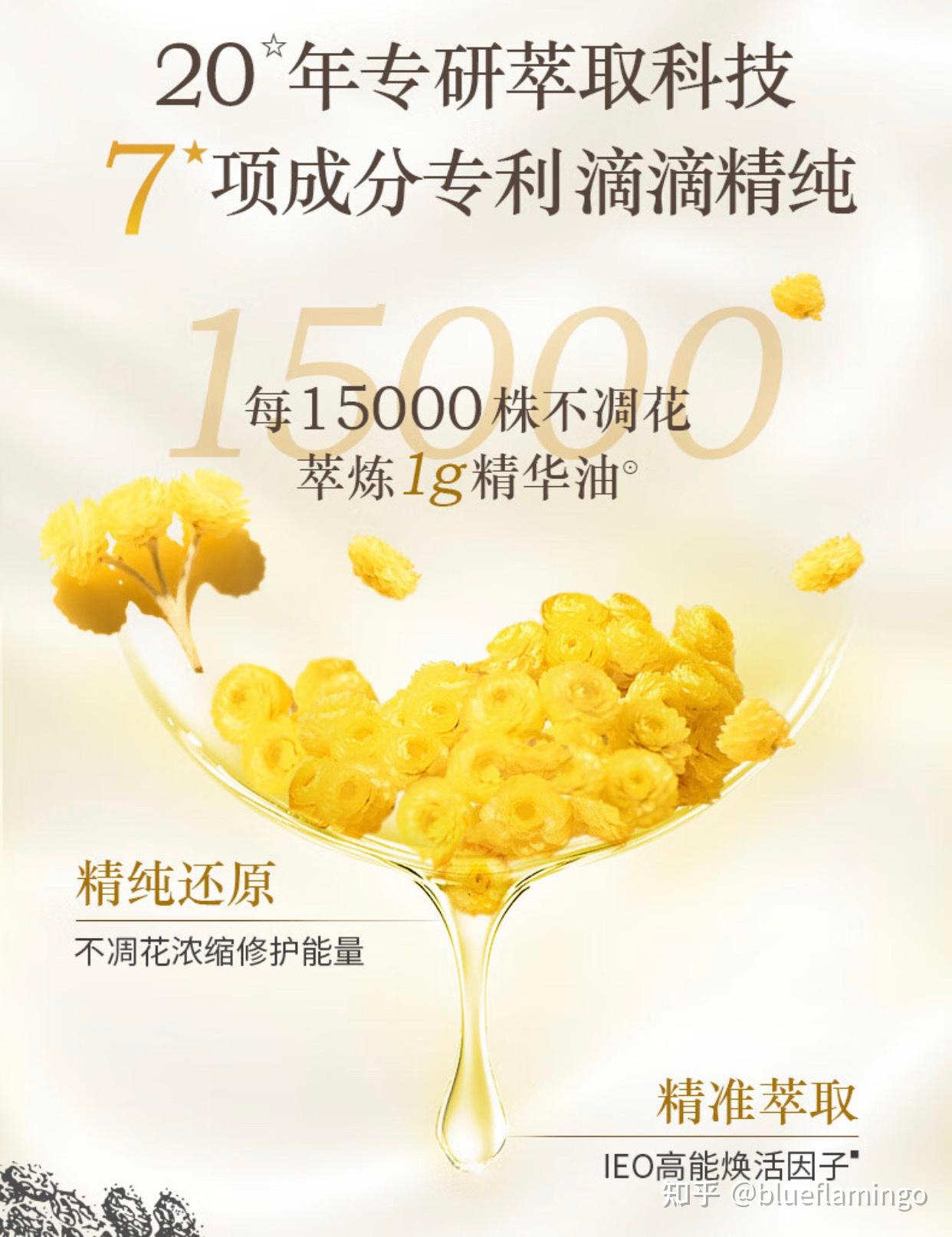 作为全球唯一一种能够提炼出高活性乙酸橙花酯的蜡菊,欧舒丹也花费了二十多年的时间(自01年开始研究起算)来研究如何保存这种稀有成分,最终使用了微脂囊体来包裹有机腊菊精华油,后者的高活抗氧化性非常卓越,欧舒丹也为此获得了7项相关专利——这和娇韵诗提纯高达65%姜黄酮精华用于肌肤修复维稳的独家工艺类似了。