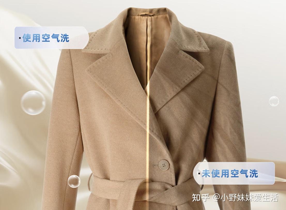 如果是吃完火锅后想快速清除衣物上的异味,它还支持“微蒸空气洗”。这个功能通过360度循环的微蒸汽热风,深入到衣物纤维里,就像给你的衣服做了一场蒸汽桑拿。不仅能去除异味、抚平皱纹,还能让衣服变得蓬松柔软,甚至能除潮,换季时把压箱底的衣物拿出来选空气洗,不用沾水就能塑形。