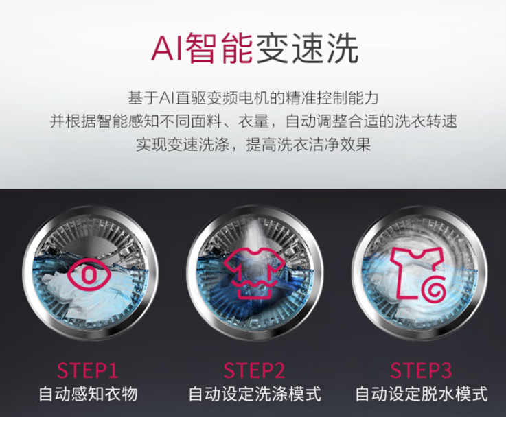 直驱电机,LG的电机算法自然是没的说,运行更平稳、更静音。