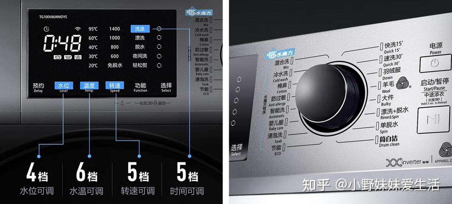 高温桶自洁、15分钟快洗、最高脱水转速比上面松下那款还高,为1250转、旋钮+触屏,也很方便。