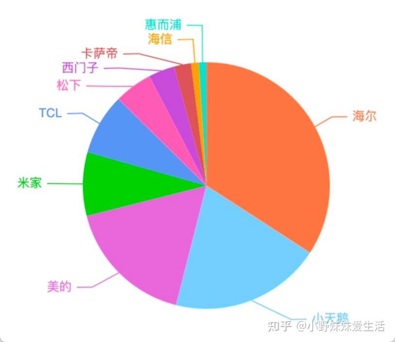 二、洗衣机品牌选择品牌只是我们购买时参考的一个大的方向,但是说「哪个品牌一定好,哪个品牌一定不好」,其实都是不科学的,因为还有具体型号和个人预算,没有绝对的好与坏,只有合适与不合适。下图为最新的洗衣机品牌占有率饼图: