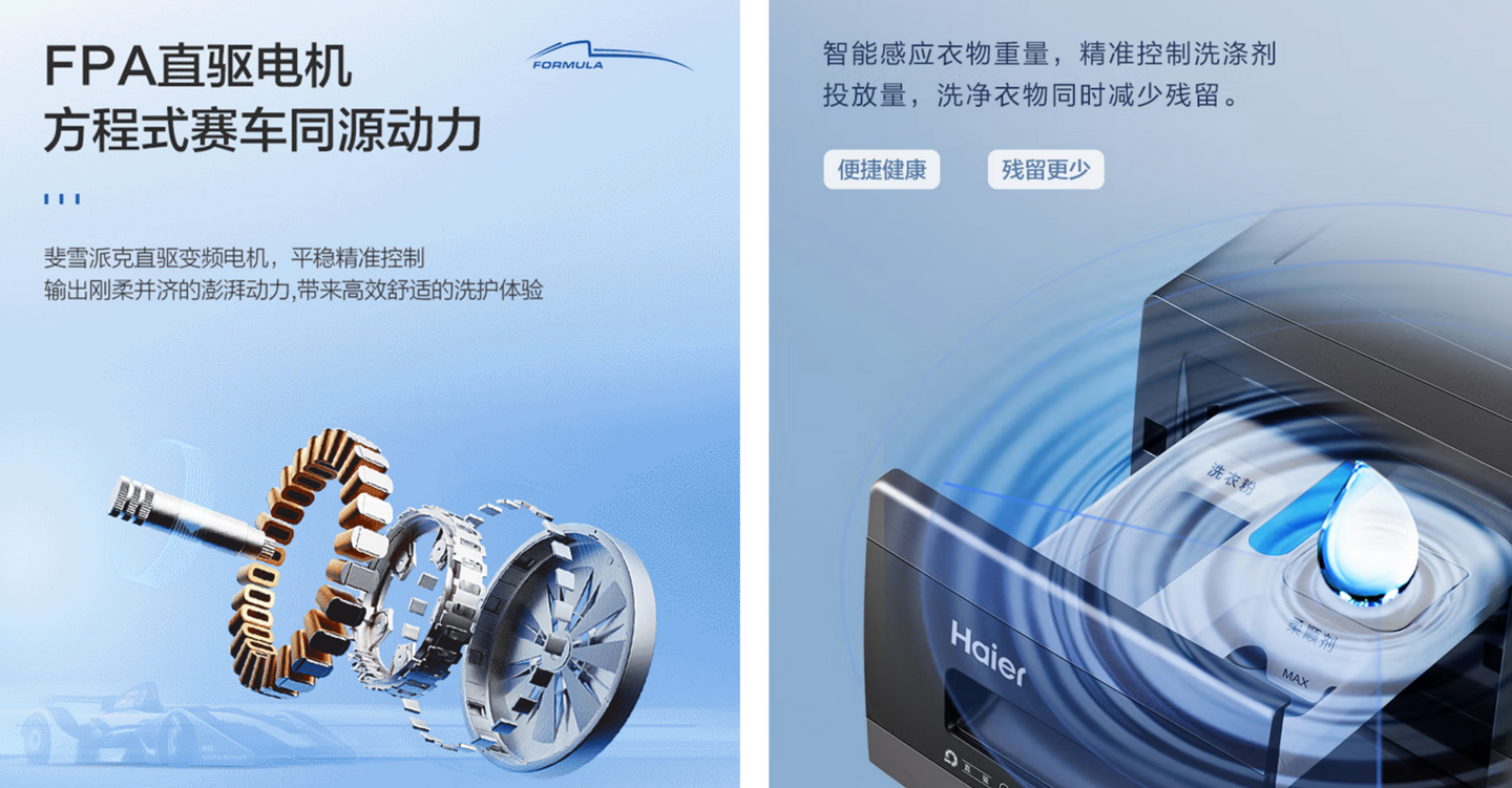 (3.2)洗烘一体机(2款BLDC电机、1款直驱电机)这3款机型分别是:海尔EG100HPLUSSL6U1、海尔XQG100-HBD14376LU1、松下XQG100-ND135。(其中海尔的两款均为海尔最新上市的精华洗系列)