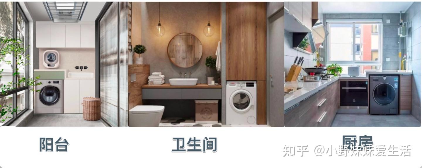 洗衣机放哪里?我们最常见的摆放区域有三个:阳台、卫生间、厨房。