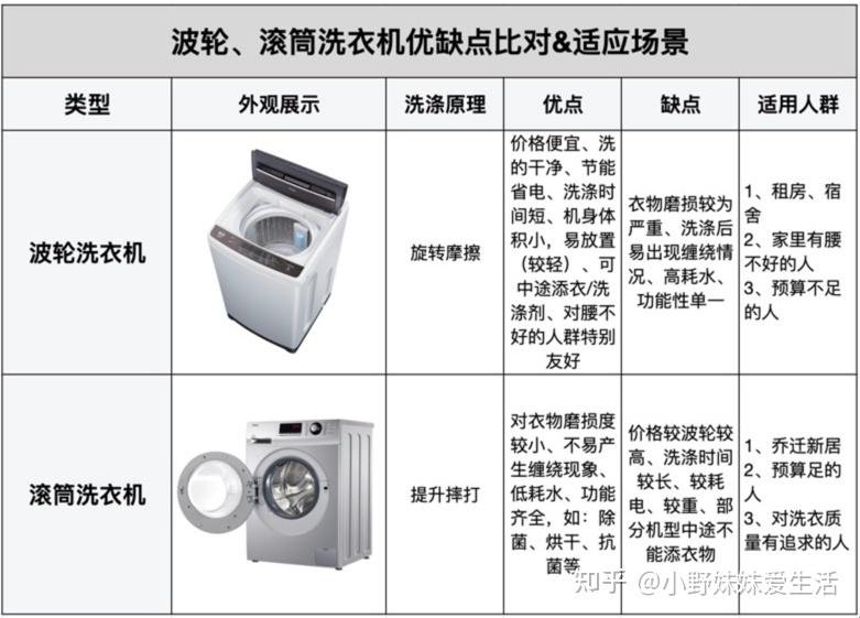 在哪里使用:出租房?宿舍?新家?放在哪里:阳台?卫生间?家里几口人:单身贵族?两人?三人?五人?或者更多?1.1、洗衣机类型选择(波轮or滚筒单洗or滚筒洗烘一体or洗烘套)从大的方向上,洗衣机可以分为:波轮和滚筒 两种。波轮 or 滚筒?