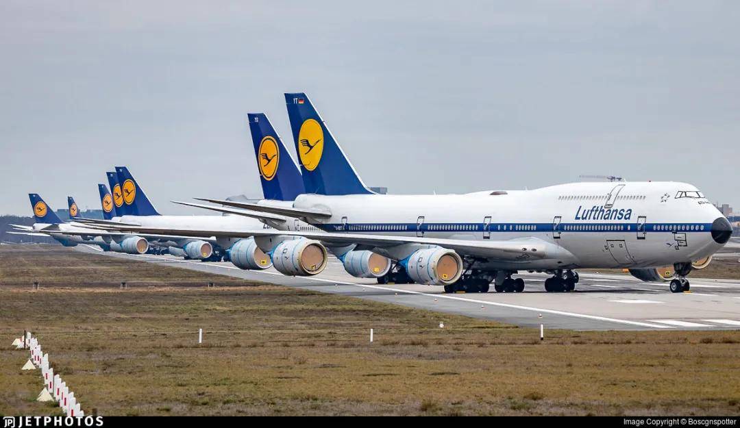 5, 汉莎航空747飞机存放在法兰克福的封闭跑道07L / 25R上。
