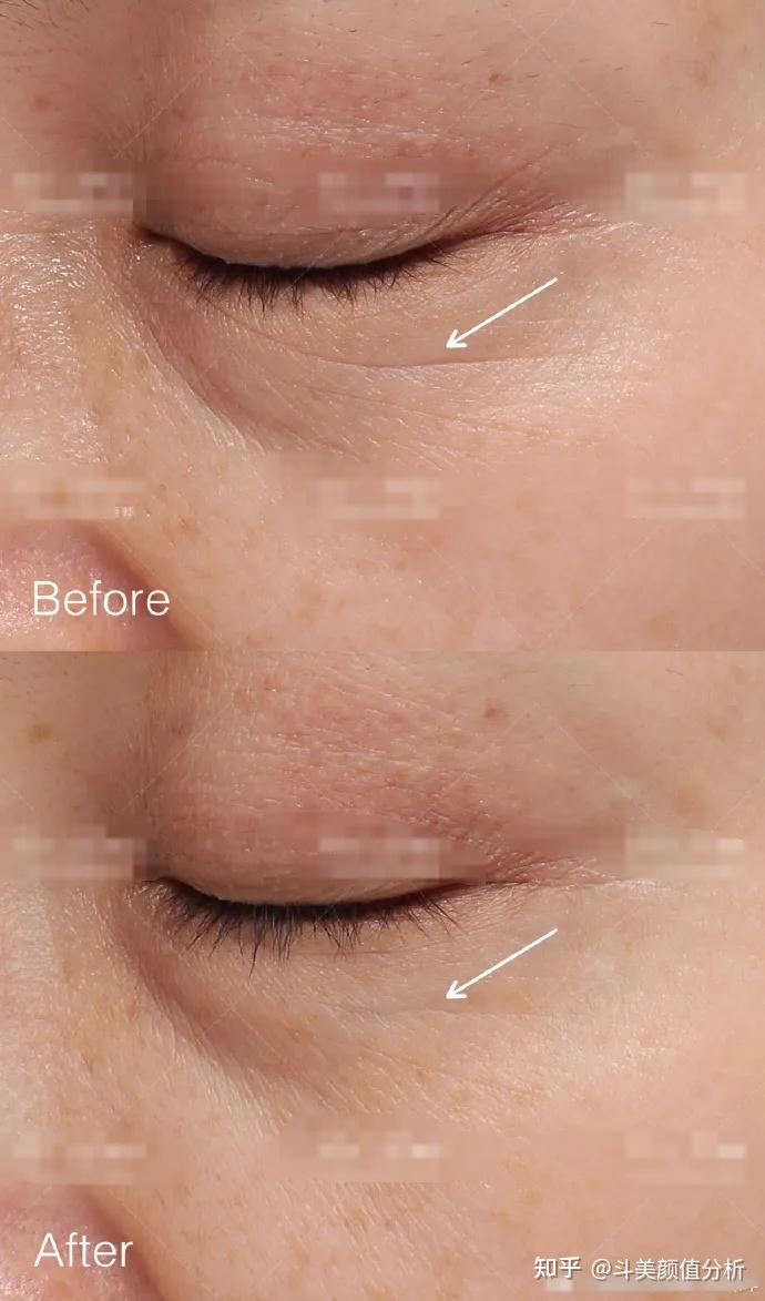 长效水光淡化眼尾细纹的效果当然仅仅是超强补水缩水还只是长效水光的一小部分优势,它更绝的是有基础水光所没有的强大抗衰能力。在紧肤、提升皮肤弹性上有显著作用。像很多30+以上的朋友,随着年纪的增长皮肤深层的胶原纤维和弹性纤维都会流失皮肤会出现皮肉分离空泡的感觉。