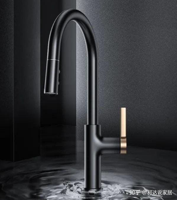 2.厨房水龙头:奢华黑金配色,让厨房高级而温馨。水镀黑色,表面油污一擦即可,不留手印,多种出水自由切换,带抽拉功能。而且因为表面加工困难,经常限量购买。