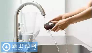 手指触摸感觉水流,水流柔和发泡丰富,说明水龙头起泡器质量较好。