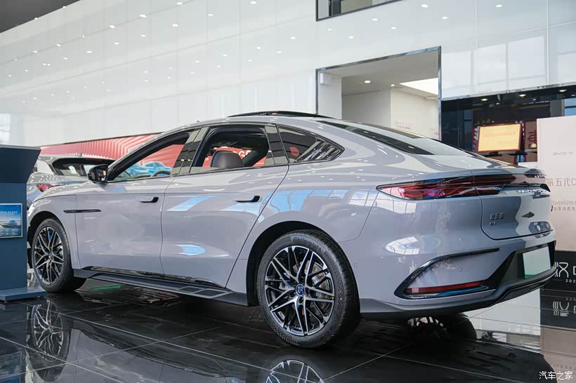 那我们还是先从外观说起,咱这 2025 款汉 EV 一眼看过去,还是熟悉的家族味道。但是,又有不少让人惊喜的小变化。那个新增的这个“未央灰”配色简直绝了,在灯光下显得特有质感,高级感一下子就上来了,感觉更加沉稳大气。
