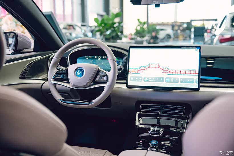 中控屏操作起来还是那么方便,双辐式多功能方向盘手感也不错,科技感满满。车内好多地方都用了钢琴烤漆材质饰板,亮晶晶的,质感超棒,唯一的小缺点就是容易沾指纹。新车的 DiLink100 智能座舱真的要夸一夸,UI 界面焕然一新,我这上手操作了一下,特别流畅,完全没有卡顿。比我老款的强了不是一点半点。
