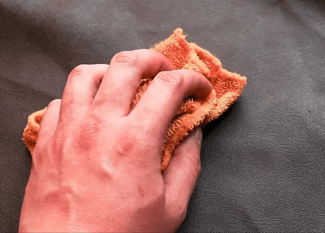 清洁油污。用脱脂溶液和超细纤维毛巾或抹布彻底擦干净。如果发现皮革上有任何颜色转移到抹布上,请立即停止并让该区域变干,看看溶剂是否对皮革本身会造成伤害。
