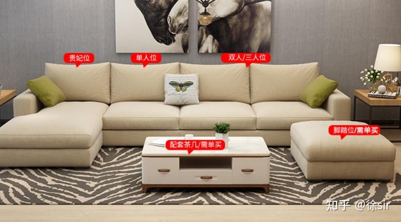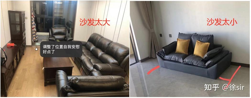 二、沙发选购指南①沙发尺寸沙发太大会显得空间拥挤,甚至走不动道,沙发太小又显得空旷。如果你有装修设计师,就按照建议来选购。如果没有的话,可以按照“黄金比例4:3”口诀来选:
